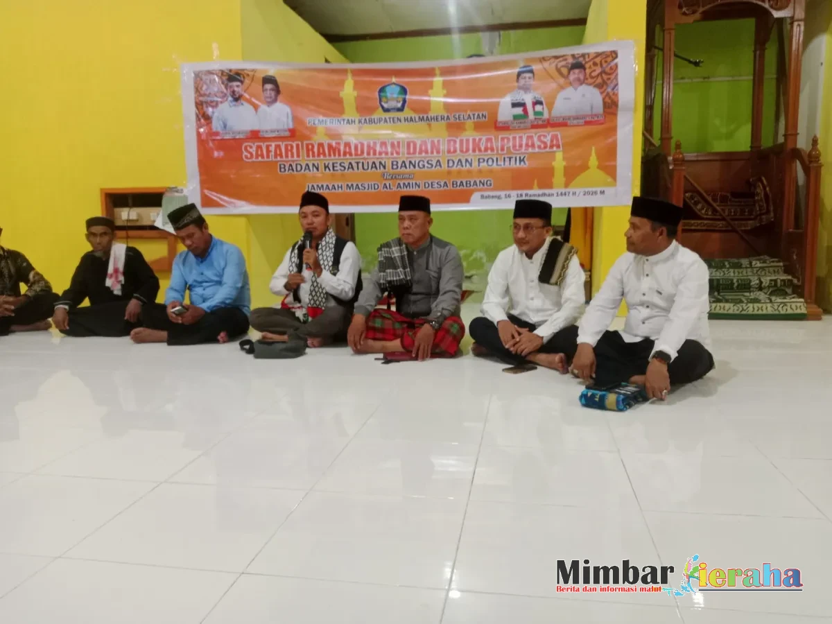 Babang, MimbarKiaraha.com – Momentum bulan suci Ramadhan dimanfaatkan Badan Kesatuan Bangsa dan Politik (Kesbangpol) Kabupaten Halmahera Selatan (Halsel), Maluku Utara, untuk mempererat silaturahmi dan memperkuat kebersamaan melalui kegiatan Safari Ramadhan yang dirangkaikan dengan buka puasa bersama jamaah Masjid Al Amin, Desa Babang, Jumat (6/3/2026).