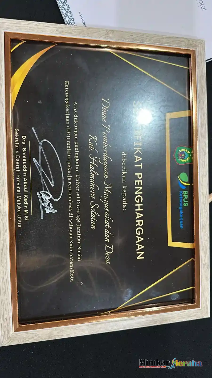 Upaya Pemerintah Kabupaten Halmahera Selatan melalui Dinas Pemberdayaan Masyarakat dan Desa (DPMD) dalam memperluas perlindungan jaminan sosial ketenagakerjaan bagi pekerja rentan desa berbuah penghargaan. DPMD Halsel menerima piagam penghargaan Universal Coverage Jaminan Sosial Ketenagakerjaan (UCJ) dari BPJS Ketenagakerjaan, Senin 02/03/2026.