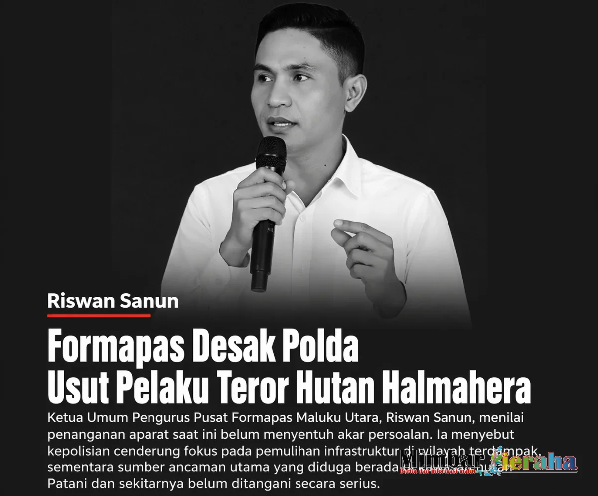 Ketua Umum Pengurus Pusat Formapas Maluku Utara, Riswan Sanun, menilai penanganan aparat saat ini belum menyentuh akar persoalan. Ia menyebut kepolisian cenderung fokus pada pemulihan infrastruktur di wilayah terdampak, sementara sumber ancaman utama yang diduga berada di kawasan hutan Patani dan sekitarnya belum ditangani secara serius.