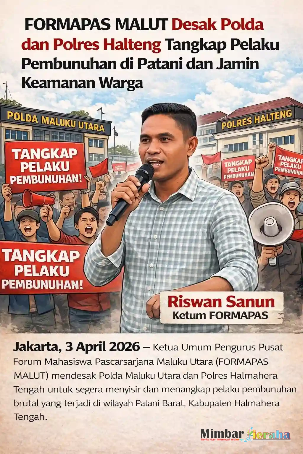 “Negara tidak boleh kalah dengan teror. Jika aparat tidak mampu menjamin keamanan rakyat, maka kami akan terus bersuara dan melawan,” tutup Riswan Sanun.